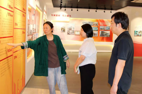 周書(shū)記陪同調研組一行繞有興致地參觀(guān)了蘇化科技園沙盤(pán)展示模型,介紹了蘇化科技園的規劃設計、發(fā)展定位以及園內入駐企業(yè)的基本情況,庭院式設計,幽靜雅致的氛圍讓他們贊不絕口。隨后來(lái)到蘇化集團展示館,周書(shū)記和他們邊看邊聊,分享了蘇化集團60多年來(lái)的艱苦創(chuàng )業(yè)發(fā)展歷程、取得的豐碩成果以及未來(lái)發(fā)展方向和戰略規劃,從歷史沿革、發(fā)展成果、科研創(chuàng )新、調整發(fā)展、文化引領(lǐng)、企業(yè)黨建等不同角度進(jìn)行了詳細的詮釋。各類(lèi)實(shí)物產(chǎn)品和歷史圖片等資料真實(shí)地反映了從1956年建廠(chǎng)以來(lái),蘇化集團歷代干部職工艱苦創(chuàng )業(yè)、團結拼搏,不忘初心、牢記使命、砥礪前行的奮發(fā)進(jìn)取精神。孟晶對蘇化集團多年來(lái)的發(fā)展所取得的成績(jì)給予了充分肯定。