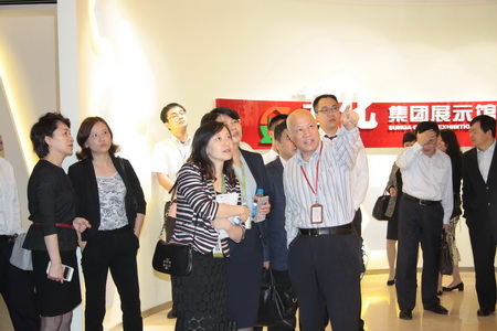 集團董事長(cháng)楊振華和公司領(lǐng)導提前來(lái)到接待大廳迎候各位嘉賓的到來(lái)。大家首先聽(tīng)取了蘇化科技園的組建、運營(yíng)和發(fā)展情況的介紹,隨后參觀(guān)了蘇化集團展示館,饒有興致的聽(tīng)取了蘇化發(fā)展歷程講解,圖文并茂的展覽和視頻資料等現代化的表現手法,使大家對蘇化60年來(lái)的發(fā)展有了更深的了解,增強了對企業(yè)的信貸支持信心。